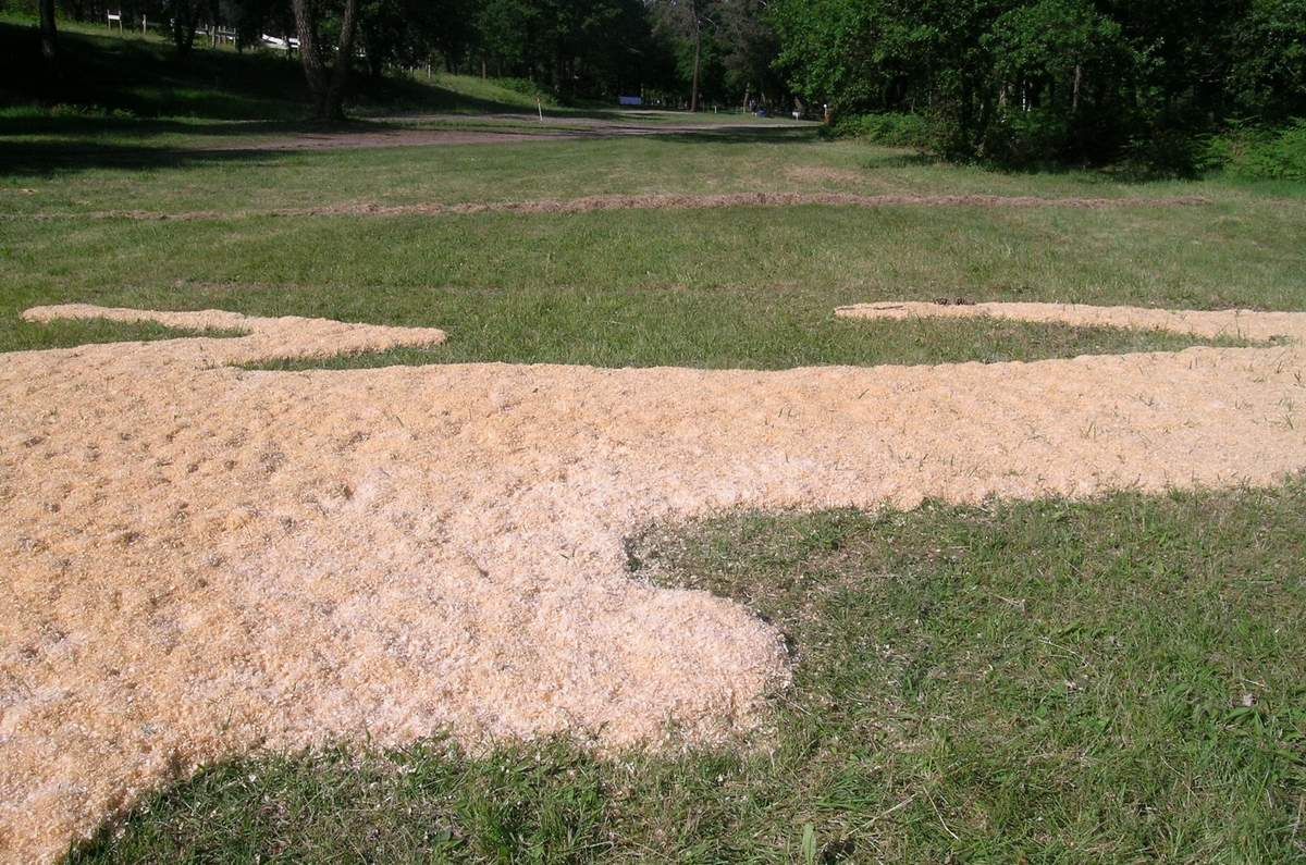 réalisé au sol avec des copeaux de bois utilisés pour la
